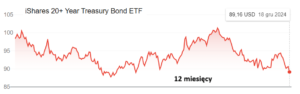 Szczególnie smutno musi być tym, którzy obstawili najbardziej „kozacki” zakład o przyszłą inflację w USA (i zarabiający jej na spadku), czyli ETF o symbolu TLT (jego pełna nazwa to iShares 20+ Year Treasury Bond ETF). Zawiera on obligacje z terminem wykupu za co najmniej 20 lat. Takie obligacje zwykle bardziej gwałtownie reagują na zmiany stóp procentowych, więc ETF TLT zaliczył jeden z gorszych dni w tym roku – od początku września jego wartość spadła już o 12%.