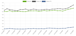 Ceny paliwa na stacjach w górę o 6-7% w ciągu czterech dni. Średnio
