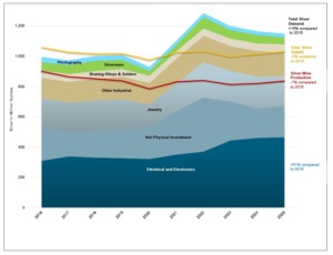 No i jego cena jest niejako silnie uzależniona od kondycji światowego przemysłu, a ta może podupaść, jeśli – oby nie, oby nie – rozgorzeją konflikty zbrojne i spadnie wymiana handlowa i dojdzie do poważnego spowolnienia gospodarczego. Historycznie i obecnie około 50% do 60% całkowitego globalnego popytu na fizyczne srebro pochodzi z zastosowań przemysłowych. Popyt przemysłowy na srebro jest procykliczny — rośnie w okresach globalnego wzrostu gospodarczego i spada podczas recesji lub spowolnienia.