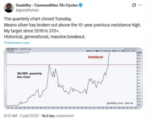 Oraz jednego z najbardziej interesujących analityków typu „samotny strzelec”, czyli niejakiego Graddhy’ego, który od wielu lat wieszczył złotą i srebrną hossę, to trzeba mu przyznać. Czy tym razem też ma rację i zobaczymy srebro po ponad 370 USD za uncję?
