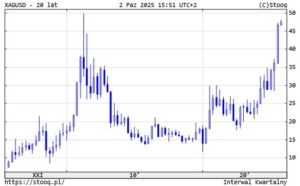 W 2025 roku popyt na ten metal ma być około 16% wyższy niż w 2016 roku, ale podaż około 3% niższa, a produkcja w kopalniach o około 7% niższa niż w 2016 roku. Tymczasem popyt z przemysłu związanego z elektroniką i elektryką urósł w dziewięć lat o 51%. Ponadto w pierwszej połowie 2025 roku fundusze zabezpieczone srebrem doświadczyły znaczących napływów netto odpowiadających 95 mln uncji – rynek srebra inwestycyjnego, nawet tego „papierowego”, znacząco ożył w porównaniu do lat ubiegłych.