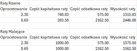 A zatem dla wysokości tej części raty, która zmniejsza kapitał do spłaty, istotne jest, czy klient wybierze spłatę w ratach równych (annuitetowych) czy malejących. Ma to wpływ zarówno na wysokość bieżącej raty (i jej strukturę), jak również na całkowity koszt odsetkowy.
