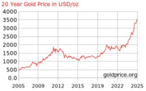 Jednak w obliczu ogromnych turbulencji, które dotknęły światowe rynki finansowe przez ostatnie pięć lat, złoto wysunęło się na główny inwestycyjny plan. W 2020 r. cena złota wynosiła 1 500 dolarów za uncję trojańską (31,1 grama). Obecna cena złota to już ok. 3 600 dolarów za uncję. Przyszłość złota zależy od sytuacji w globalnej gospodarce – i kondycji tradycyjnych walut. To słabnąca realna wartość dolara w dużej części odpowiada za windowanie cen złota.