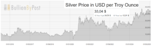 Podczas gdy złoto co i rusz trafia na pierwsze strony gazet, srebro pozostaje na razie w cieniu. Współczynnik ceny złota do ceny srebra jest obecnie w okolicach 100 (co oznaczy, że za jedną uncję złota można kupić 100 uncji srebra). 10-letnia średnia dla tego wskaźnika jest bliższa 85 punktów. Średnia historyczna wynosi ok. 60 punktów.