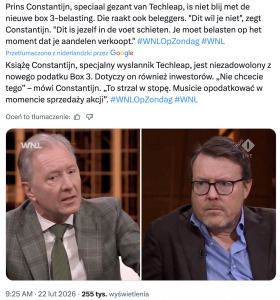 Do sprawy włączył się przedstawiciel holenderskiej rodziny królewskiej, książę Constantijn, który ostro skrytykował ustawę. Obawia się on, że Holandia stanie się mniej atrakcyjna dla inwestorów i talentów z zagranicy. Według niego, rząd wysyła tym podatkiem zły sygnał w świat, że inwestorzy i przedsiębiorcy nie są mile widziani. Niby na papierze wygląda to sprawiedliwie: ci, którzy zarabiają więcej, płacą więcej. Ale system staje się również dużo bardziej skomplikowany i co najważniejsze – mało przewidywalny.