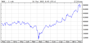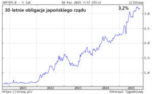 3% inflacji to – jak na Japonię – bardzo dużo. Ale ten medal ma dwie strony: przez pięć kolejnych kwartałów japońska gospodarka systematycznie się rozwijała, mimo że wyższe cła ze strony USA negatywnie wpływają na eksport kraju. Wzrost gospodarki oznacza wzrost zysków spółek. Spadający (wskutek sytuacji na rynku obligacji) jen połowicznie ucieszył inwestorów.