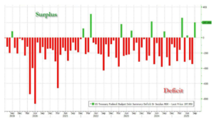 Jest jeszcze jeden argument, choć głównie działający na amerykańskich inwestorów. Otóż z najnowszych danych amerykańskiego budżetu wynika, że po raz pierwszy od dawna zarejestrował on… nadwyżkę dochodów nad wydatkami. We wrześniu całkowite wpływy podatkowe wyniosły 543 mld dolarów i były najwyższe od kwietnia (który jest miesiącem poboru podatków). A przede wszystkim były o 200 mld dolarów wyższe od wydatków budżetowych. Więcej na ten temat oraz ciekawe wykresy tutaj.