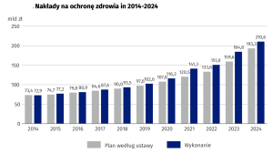 Ponoszone w poprzednich latach wydatki na system zdrowia podsumował GUS w swoim opracowaniu z 2025 roku. W latach 2014-2024 nakłady na ten cel rosły dynamicznie i dotyczyło to nie tylko corocznych planów budżetowych, ale też wykonania, które zawsze od 2015 roku przewyższało plany.