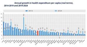 W 2023 roku dynamika osłabła, po czym w 2024 roku ponownie powróciła do wyższych poziomów powyżej 3%. Ostatnie tendencje można wyjaśnić zdaniem ekspertów z OECD wyzwaniami ekonomicznymi i geopolitycznymi, które wpłynęły na zdolność krajów do finansowania dodatkowych wydatków na opiekę zdrowotną w latach 2022 i 2023, a także wpływem wysokiej inflacji, która często ograniczała nominalny wzrost wydatków, więc konieczne były dalsze wzrosty nakładów. To m.in. przypadek naszego kraju.
