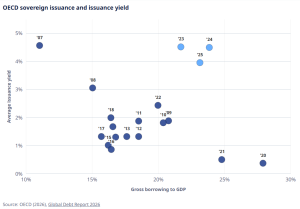 Kłopoty w pozyskiwaniu długu długoterminowego mogą skłonić rządy do przesuwania emisji obligacji w kierunku długu krótkoterminowego, łatwiejszego w pozyskaniu, ale droższego w obsłudze, z koniecznością częstego rolowania, czyli zaciągania nowego długu na refinansowanie starego. To może spowodować, że rynki długu będą bardziej podatne na wstrząsy. Jest to szczególnie ważne w czasie, kiedy inwestycje w rozwój sztucznej inteligencji i rosnące wydatki na obronę dodatkowo zwiększają popyt na pieniądze.