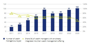 Procent wealth managerów, którzy zintegrowali art advisory w swojej ofercie