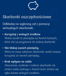 Konsultant wyjaśnił czytelniczce, że „Skarbonka” nie jest produktem, na który faktycznie przelewa się pieniądze ani miejscem, gdzie są one technicznie wydzielane z salda rachunku. Zgodnie z tym wyjaśnieniem jest to narzędzie wyłącznie wirtualne, służące do zapisywania celu oszczędnościowego i przypisywania do niego kwot deklarowanych przez użytkownika. Oznacza to, że zgodnie z tym, jak opisany jest produkt, użycie przycisku „wpłać” nie powoduje fizycznego przesunięcia środków na osobny rachunek czy subkonto, lecz jedynie aktualizuje wartość celu widocznego w aplikacji. Tak samo po wypłaceniu środków, saldo się nie zmienia, ponieważ pieniądze od początku były częścią bieżącego budżetu.