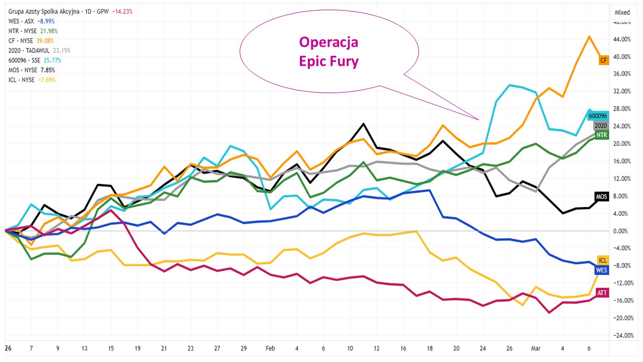 Sektor producentów nawozów w wydaniu giełdowym jest dość skoncentrowany, gdyż w skali świata da się do niego zaliczyć tylko nieco ponad 20 podmiotów. Bezapelacyjnym liderem jest australijski Westfarmers, a trójkę na podium uzupełniają jeszcze kanadyjski Nutrien i amerykański CF Industries. Reakcja kursów akcji spółek branży na wydarzenia frontowe napływające z Bliskiego Wschodu była raczej mieszana.