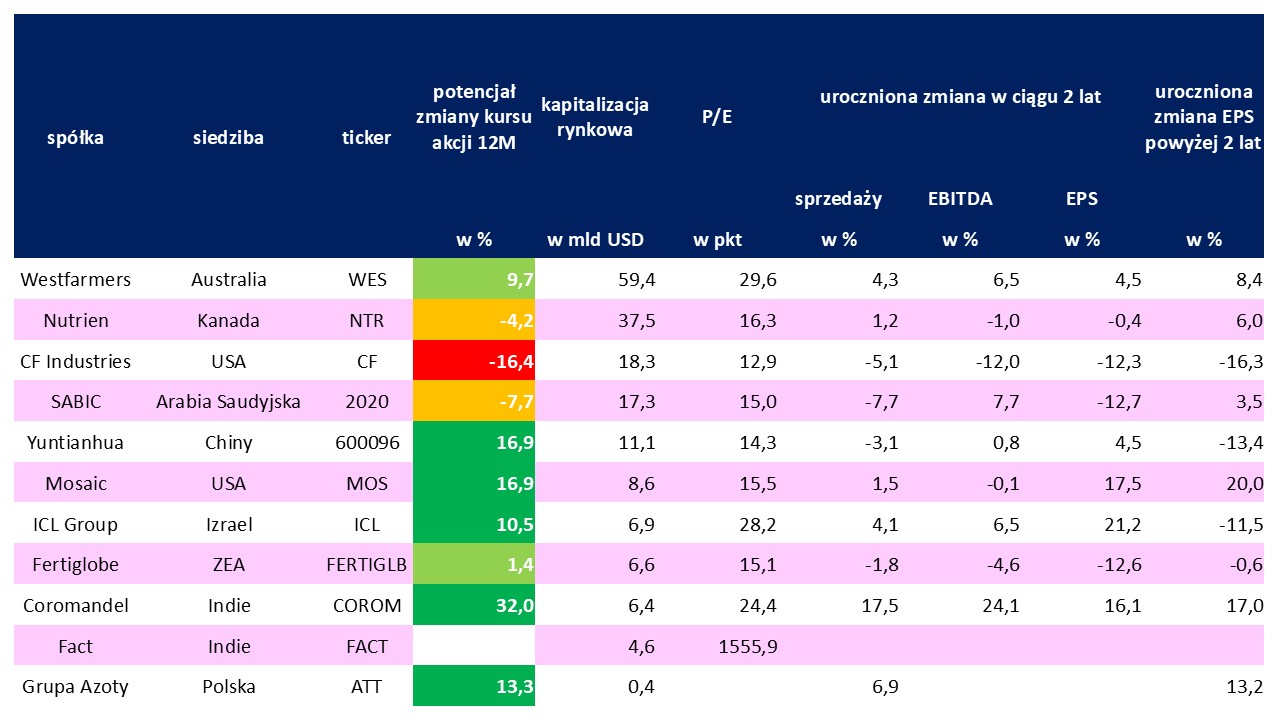W Polsce w zasadzie jedynym rodzynkiem branży nawozowej jest Grupa Azoty. W porównaniu jednak z możnymi świata firma nie wypada okazale, gdyż jej kapitalizacja rynkowa wynosi 1,6 mld zł. Krajowa spółka na pewno nie gra w pierwszej lidze światowej. Do zakwalifikowania się do Top-10 niezbędna jest bowiem wartość rynkowa akcji na poziomie ponad 4 mld dol. Wiele z największych firm nawozowych jest przedmiotem obrotu giełdowego.
